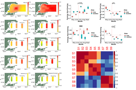 研究結果表明,規?;愒屦B殖是桑溝灣內海水碳酸鹽體系時空變化的主要生物控制因素。海帶通過吸收水體中無機碳,提升海水的pH和碳酸鈣飽和度,維持海水碳酸鹽系統穩定,為貝類等鈣化生長提供適宜生長、發育的環境;牡蠣養殖區表現出快速的碳酸鈣沉積現象,單位水體的鈣化速率甚至超過珊瑚礁生態系統,研究結果證實了貝藻多營養層次綜合養殖模式是一種綠色高效的生態養殖模式,不僅具有較好的經濟價值,同時可為減緩全球氣候變化的影響提供應對策略。