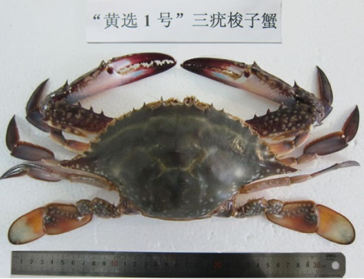 三疣梭子蟹“黃選1號(hào)”是我國(guó)海產(chǎn)蟹類(lèi)第一個(gè)人工選育新品種,2012年通過(guò)國(guó)家水產(chǎn)原良種審定委員會(huì)審定。2012年被農(nóng)業(yè)部列為適宜推廣的選育品種,2013年被農(nóng)業(yè)部漁業(yè)局和全國(guó)水產(chǎn)技術(shù)推廣總站列為漁業(yè)主導(dǎo)品種,2014年被農(nóng)業(yè)部列為主導(dǎo)品種。