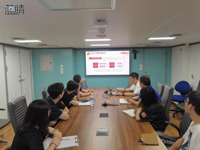 本航次為32個國家自然科學基金委項目提供共享服務,而其中大部分項目負責人及參航人員都在40歲以下,都是活躍在海洋領域科研一線的青年骨干力量。為保證疫情期間各項調查工作順利進行,夏季航次組建了臨時黨支部,以黨建為引領,將政治學習與業(yè)務工作相結合。在科研調查間隙,臨時黨支部開展了“學黨史、促科研、海洋強國有我”主題黨日活動,集體學習了“習近平總書記在慶祝中國共產(chǎn)黨成立100周年大會上的重要講話”等一系列內容。