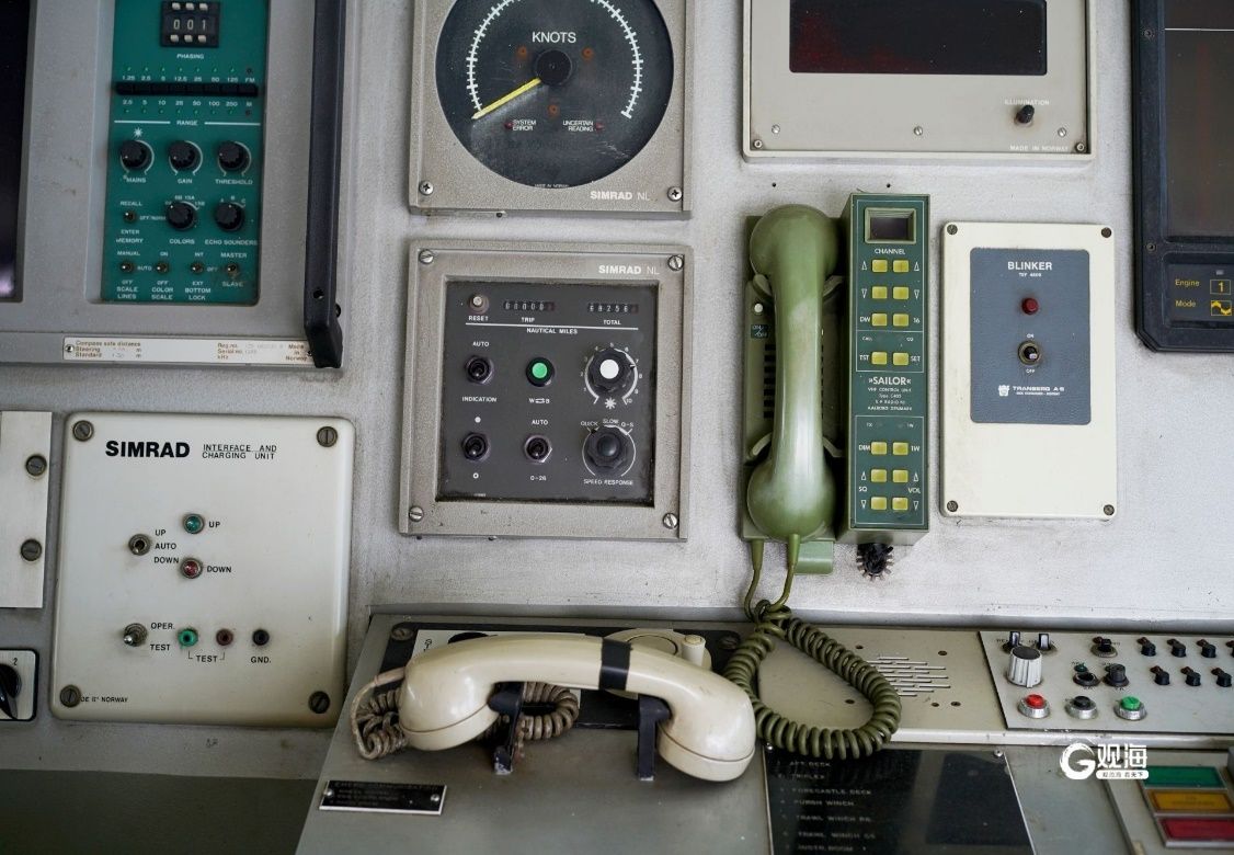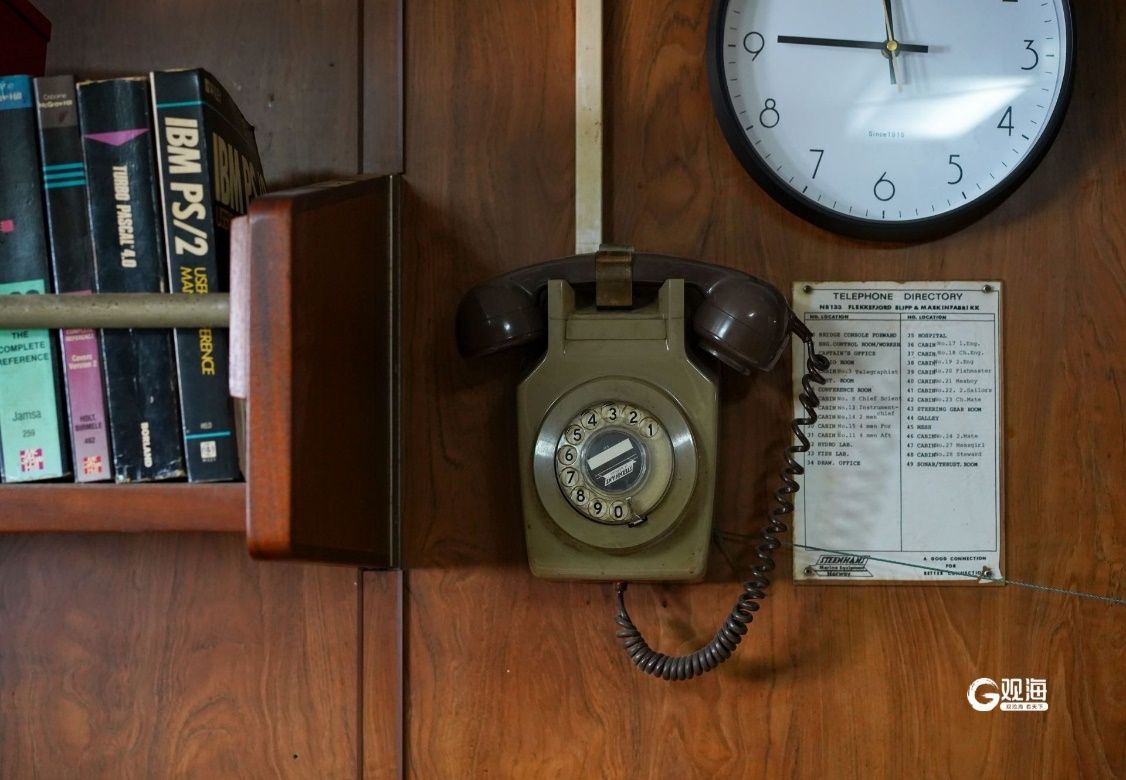 這是“北斗”號(hào)駕駛室里的老式電話,綠色的電話用于船與船、船與陸地的通訊,白色的電話用于船舶內(nèi)部生活區(qū)的通訊。