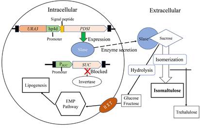 研究團隊構建的工程菌以蔗糖或糖蜜為底物高效發酵生產572.1g/L的異麥芽酮糖,得率達到0.96g/g,異麥芽酮糖純度達到97.8%;利用強啟動子增強酶的表達并利用聚乙二醇-褐藻膠包埋實現固定化,單批次固定化酶催化反應可生成異麥芽酮糖620.7g/L,可連續催化13批次以上。工程菌以天然褐藻生物質為唯一發酵原料,不需額外引入酸堿試劑,通過一步發酵在72小時內生產71.8mM的褐藻寡糖,純度達到92.6%,為褐藻水解制備褐藻寡糖的產業化開發奠定了基礎。